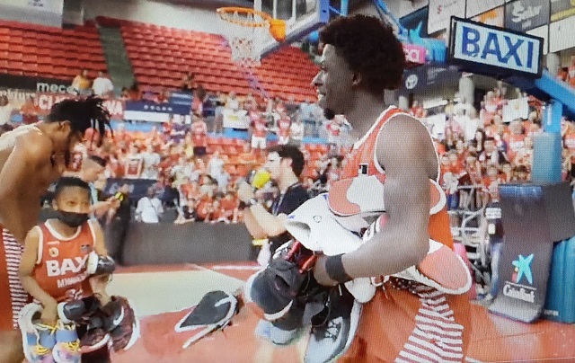 Los jugadores del BAXI Manresa demuestren día a día que esto del baloncesto y el entorno les mola. Tras jugarse el último partido de la temporada 21/22, en la que el equipo quedó séptimo, además de ser subcampeón de la Final Four de la BCL, dos de sus jugadores más destacados, Chima Moneke y Thomasson Jr., regresaron del vestuario cargados de zapatillas, las cuales regalaron a los más pequeños que seguían en las gradas del Nou Congost. No me imagino a las grandes estrellas del Real Madrid o Barcelona esta enorme complicidad con la grada, algo que sí se ve, aunque no...