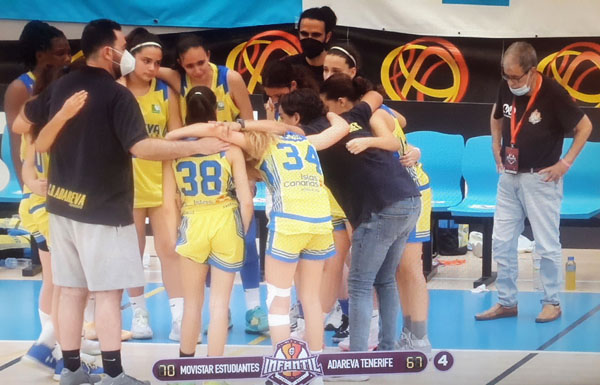 La jugadora Sidiki Doumbia se convirtió en la reina del parquet, disputando 36 de los 40 minutos, en los que anotó la friolera de 31 tantos y capturando 21 rebotes. Su valoración fue de +48. Con empate a 67 puntos el Adareva lagunero y el Estudiantes, ambos del Grupo B, se afrontaron los últimos 46 segundos de partido. Los contendientes buscaban cosechar la victoria con la que decir adiós al Campeonato de España Infantil Femenino como terceras de grupo. Hay ataque estudiantil, con intento triple que se falla, siendo la posesión para las de amarillo, quienes buscan la canasta rival. Hay pase...