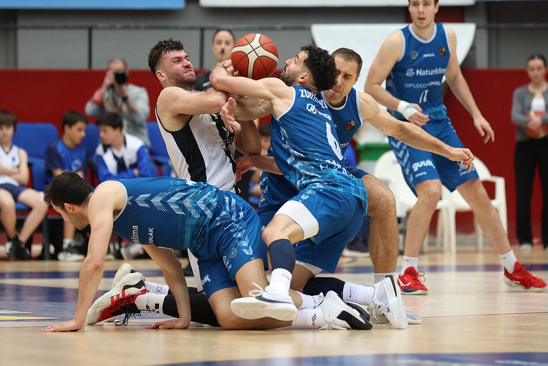 Un estratosférico triple de Xabi Oroz y un sólido Real Betis fuerzan los quintos en sus series Tuvo hasta dos lanzamientos el Grupo Ureta Tizona para haber conquistado el billete a la Final Four, pero sus dos errores, unidos a un estratosférico triple de más de 10 metros de Xabi Oroz terminaron por llevar al Guuk Gipuzkoa a la disputa del quinto encuentro en la noche del próximo viernes. Un camino que emuló desde Sevilla un Real Betis que fue capaz de igualar el 2-0 inicial del Movistar Estudiantes para poder citarse de nuevo en Madrid. ÁREA DE COMUNICACIÓN FEB Cerró el lado bajo del cuadro sus dos eliminatorias por la vía...