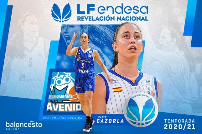Contando con el respaldo de entrenadores, capitanas y aficionados, la LF Endesa no ha tenido duda alguna a la hora de decidir por unanimidad el nombre de Maite Cazorla como el de la jugadora Revelación Nacional de esta temporada 2020/21. Todo un talento de futuro cuyo nombre es una realidad presente y que esta temporada ha sido una de las claves del buen funcionamiento de un Perfumerías Avenida con el que levantó la Supercopa de España 2020. PABLO ROMERO / ÁREA DE COMUNICACIÓN FEB Cuenta con apenas 23 años de edad y sus manos parecen desprender magia cada vez que la pelota...