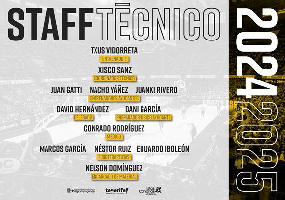 La Laguna Tenerife ha definido su staff técnico para la temporada 24/25. El entrenador Txus Vidorreta volverá a contar con Xisco Sanz como coordinador técnico y preparador físico. Juan Gatti, Nacho Yáñez y Juanki Rivero ejercerán de entrenadores ayudantes. Conrado Rodríguez Jaubert repite al frente de los servicios médicos, junto a los fisioterapeutas Marcos García, Eduardo Iboleón, que compaginará el primer equipo con la cantera, y la incorporación de Néstor Ruiz. Daniel García Trujillo desempeñará funciones de preparador físico junto a Sanz; mientras que David Hernández seguirá siendo el delegado y Nelson Domínguez, el responsable del material...