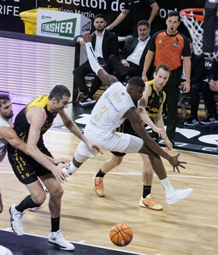La Laguna Tenerife cosechó esta tarde su quinta victoria de seis jornadas en la Liga ACB. Los de Txus Vidorreta se impusieron al Recoletas Salud San Pablo Burgos por un apretado 101 a 97, con dos hombres destacados por cada bando: Marcelinho Huertas (28 puntos y 9 rebotes; +37 de valoración) y Gio Shermadini (14 tantos + 6 capturas; 24 de valoración), por parte canarista; el portorriqueño Jameel Jackson (24 puntos y 24 de valoración) y Corbalán (17 puntos y 15 de valoración), por el plantel entrenado por Bruno Savignani. FOTOS: EMILIO COBOS Encajar ¡97 puntos! es algo excesivo para la defensa...