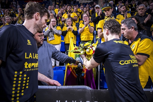 Hoy la familia canarista vivió un día con sabor agridulce. A primeras horas de la tarda, lágrimas y dolor por el último adiós al que fuera directivo de la Peña San Benito, Felipe Hernández Gil "PIPO", un "aurinegro de corazón", y por la noche, alegría del colectivo aurinegro en el primer partido de la Basketball Champions League, que deparó la victoria de LA LAGUNA TENERIFE ante el Nymburk checo, por un claro 104 a 80. En los prolegómenos del encuentro, los capitanes del plantel canarista (Marcelinho Huertas, Gio Shermadini y Aaron Doornekmap) se dirigieron a la ubicación de la Peña San...