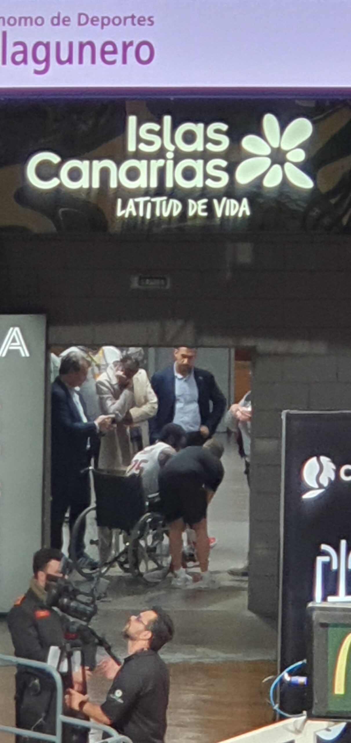 En los inicios del último cuarto del encuentro de este mediodía en el Santiago Martín el jugador del Basket Gerona, Kenny Chery, canadiense con pasaporte de Haití, entraba a la zona para buscar la canasta cuando se encontró con Gio Shermadini, con quien impactó con la rodilla izquierda. AGUSTÍN ARIAS.- El dorsal 25 del plantel de Katsikaris quedó tendido en el parquet, con claras muestras de dolor. Desconozco el protocolo que rige en la ACB sobre la actuación del médico local, en el caso de que el del equipo visitante no viaje. Lo cierto es que Conrado Rodríguez-Jaubert, tras pedir autorización al banquillo...
