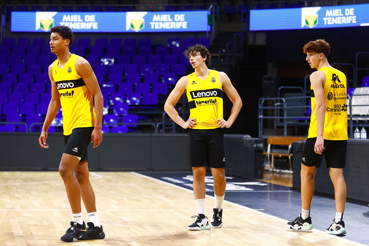 El Lenovo Tenerife se ejercita sobre el parquet del Santiago Martín tras su extraordinaria participación en la Copa del Rey. El conjunto aurinegro no cuenta en estos entrenos con los internacionales Gio Shermadini (Georgia) Marcelinho Huertas (Brasil), Bruno Fitipaldo (Uruguay) y Sasu Salin (Finlandia), quienes afrontan partidos de la "ventana FIBA" cara al Mundial 2023. Sí están Sergio Rodríguez, Aaron Doornekamp, Cook y Fernández. Para que Vidorreta, Justo y Yáñez puedan hacer un trabajo de equipo se han incorporado a las sesiones los júniors Louis Riga, Diego Fernández y Danilo Lorenzo. Fran Guerra se recupera de unas molestias, que le impidieron formar parte de...