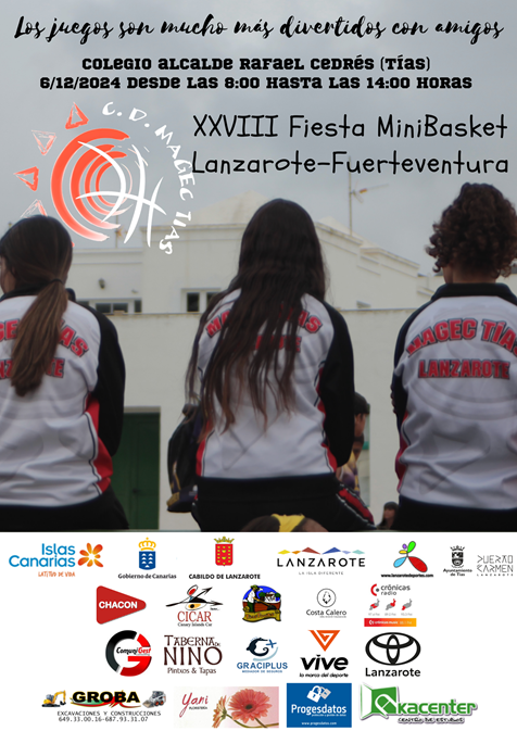 El torneo contará con la participación de diez clubes y se desarrolla en el Colegio Alcalde Rafael Cedrés PRENSA CB MAGECTIAS.- El CD Magec Tías realizará este próximo viernes la XXVIII Fiesta Minibasket Lanzarote - Fuerteventura, un evento tradicional de baloncesto base que se celebra temporada a temporada en el Municipio de Tías. La XXVIII Fiesta Minibasket Lanzarote - Fuerteventura es un evento esperado por todos los amantes del baloncesto base. Este viernes, desde las 08:00 horas de la mañana y hasta las 14:00 horas aproximadamente, el Colegio Alcalde Rafael Cedrés de Tías será la sede donde los más jóvenes jugadores demostrarán su...