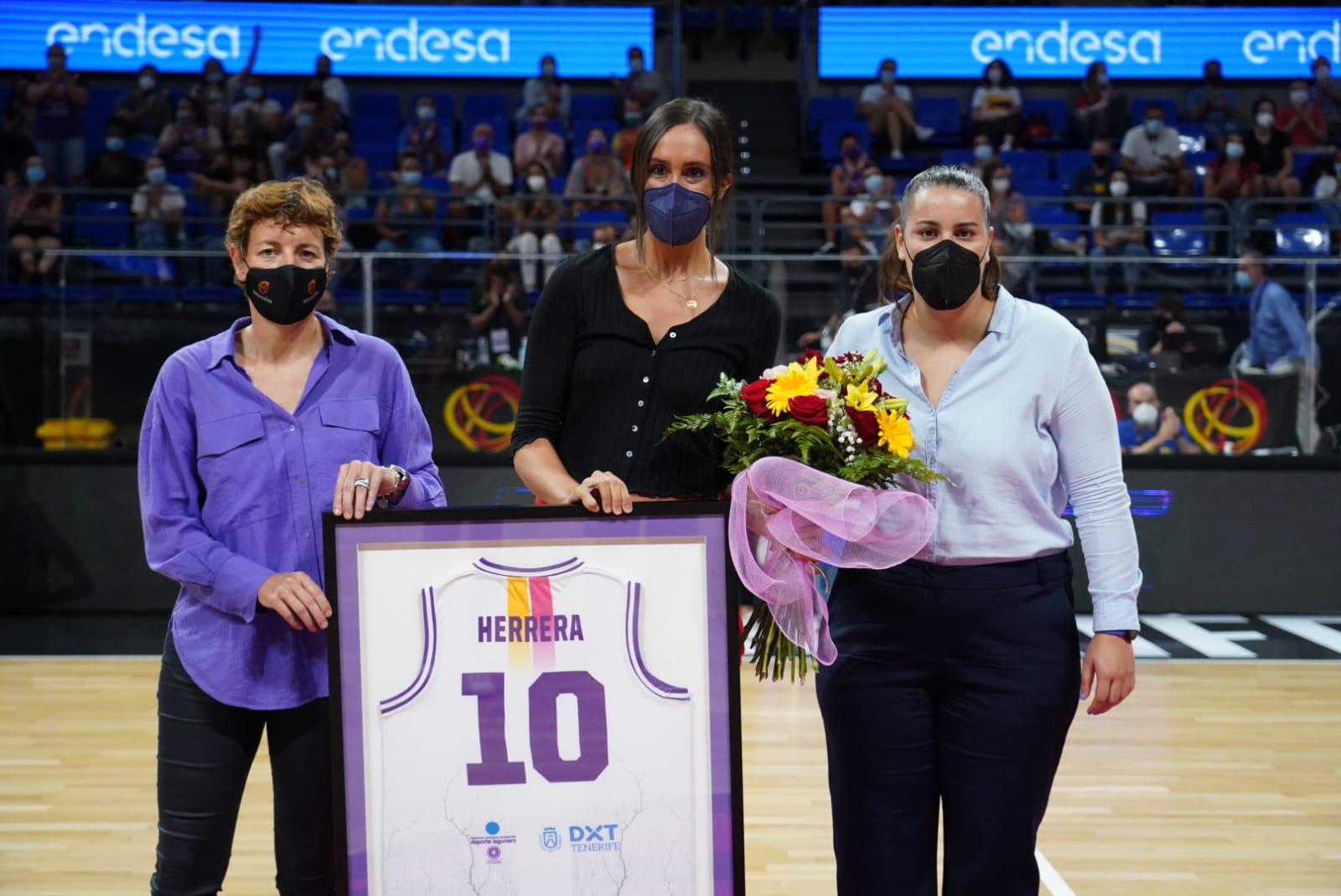 Laura Herrera se emocionó. Claro que sí. Por los aplausos recibidos desde las gradas del Santiago Martín y por las imágenes proyectadas en la pantalla gigante en la que se hizo un recorrido por su historia.