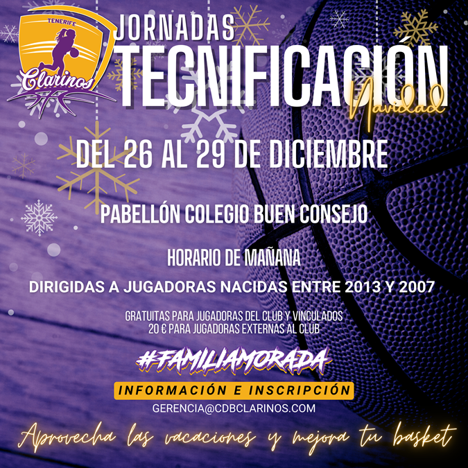 El Tenerife Clarinos pondrá en marcha, un año más, sus Jornadas de Tecnificación durante el parón competitivo navideño, destinadas a jugadoras nacidas entre los años 2007 y 2013.