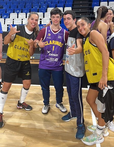 La plantilla del Tenerife Clarinos recibió ayer sobre el parquet del Santiago Martín la visita de componentes de la Asociación Activoz.