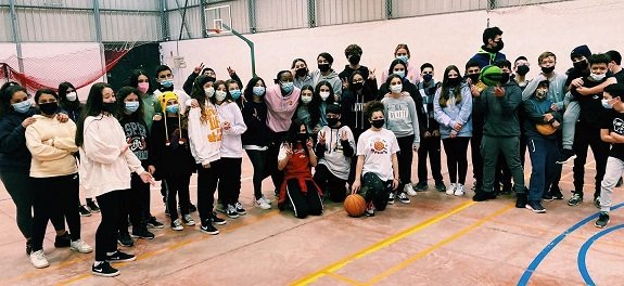 La de compartir cancha y balón con jugadoras del Tenerife Clarinos, en la que ha sido primera visita a centros docentes tras la pandemia.