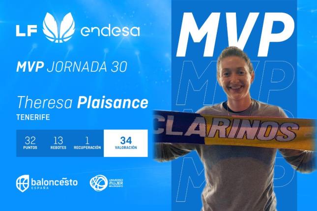 El compromiso de Plaisance con el Tenerife se ve reflejado en la conquista de los dos últimos MVP’s de la fase regular del curso. La suerte no ha acompañado, pero sin duda el fichaje de la interior estadounidense ha dado sus frutos. Este fin de semana, la jugadora superó los registros de la jornada 29 en la que se alzó hasta los 31 de valoración en el que resultó ser un triunfo vital para el cuadro isleño.