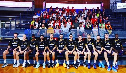 Pequeños y mayores disfrutaron de una apasionante jornada de baloncesto, tanto animando al equipo de Txus Vidorreta como en los prolegómenos cuando el club tuvo el detallazo de ver a la plantilla posar junto al club gomero.
