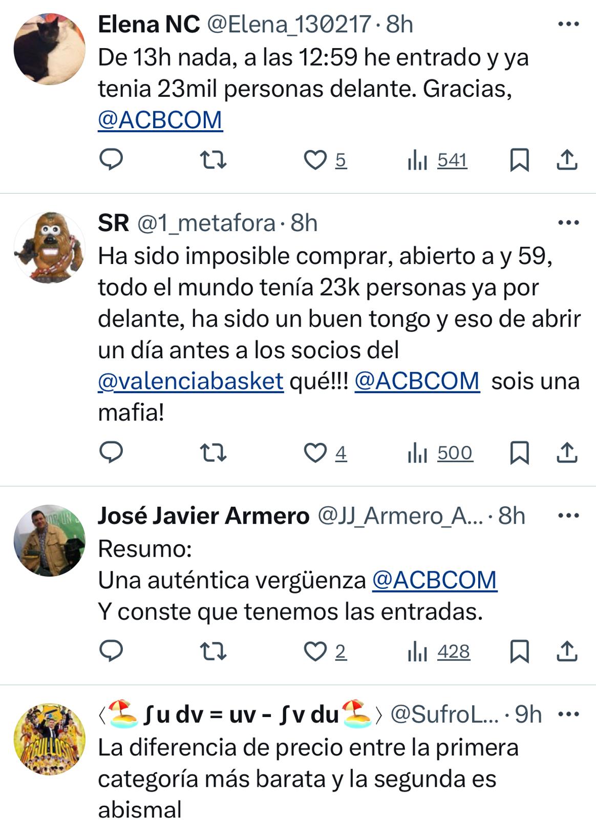 Ahora les adjunto algunos de esas quejas, pero permítanme que añada un tema que considero de JUZGADO DE GUARDIA y que debería hacer reaccionar a Antonio Martín -si es que pinta algo en la ACB-.