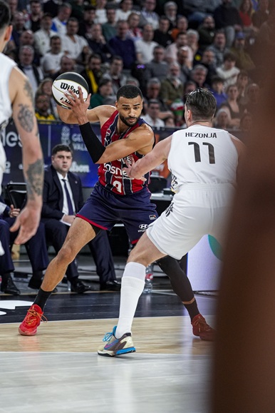 Cuando parecía que de nuevo el Kosner Baskonia podía descolgarse, volvió a aparecer Luwawu-Cabarrot para rescatarle. Junto con el vertical Trent Forrest y el esforzado Eugene Omoruyi lograron minimizar los daños al descanso (52-47, m.20).