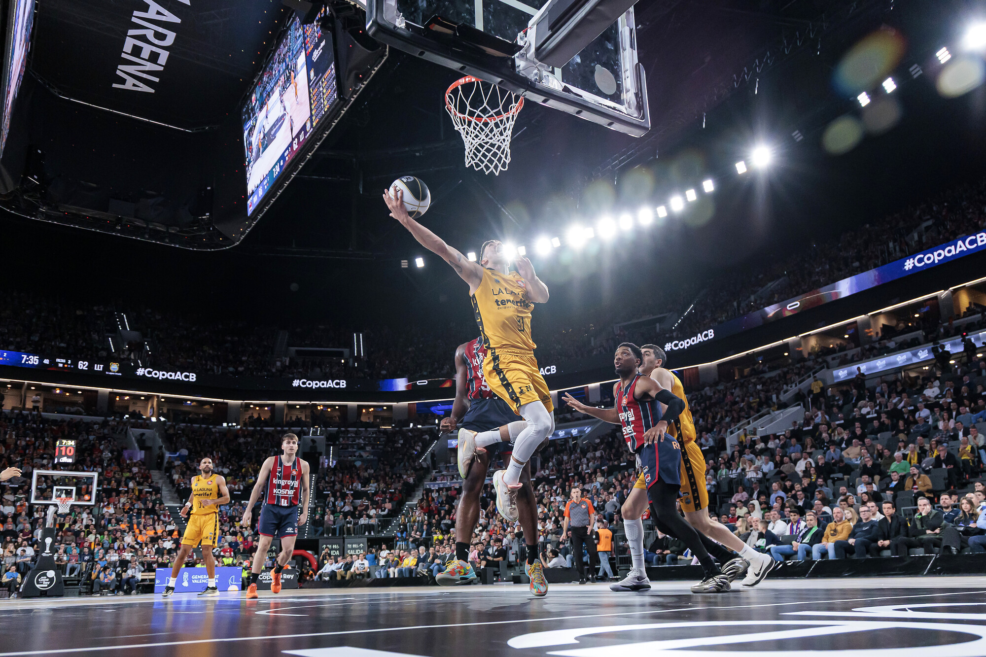 No pudo ser. La Laguna Tenerife cayó eliminado este viernes tarde de la Copa del Rey ante el Kosner Baskonia (91-81) después de quedarse a las puertas de remontar un -16 (36-20, 49-33) y apurar sus posibilidades hasta el último resuello. El grupo de Txus Vidorreta firmó un ejercicio enorme de fe y trabajo, pero no fue suficiente para conseguir el billete para semifinales.