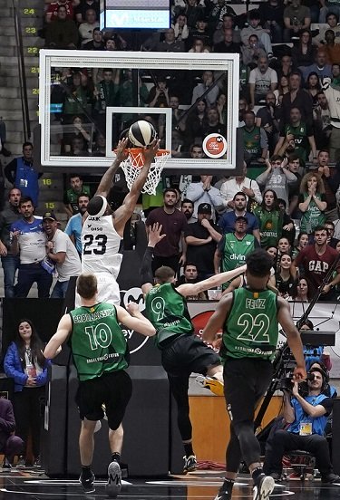 Con Aaron Doornekamp cerrando el grifo de Parra, el grupo de Txus Vidorreta impuso por fin su ritmo. Los triples de Sasu Salin y las acciones de Jaime Fernández y Gio Shermadini voltearon el guión para apretar de nuevo la contienda, tras un parcial de 1-16 (37-39). Solo los libres de Pau Ribas permitieron a los locales irse a la pausa cuatro arriba (44-40).