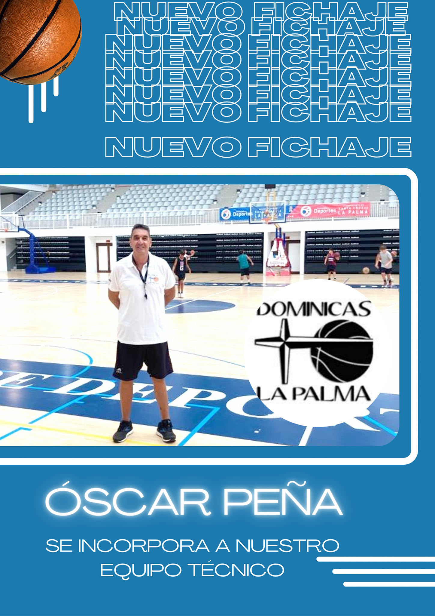 El Club Baloncesto Dominicas La Palma hizo oficial este sábado al fichaje del verano en la Isla Bonita. El experimentado entrenador ÓSCAR PEÑA, quien fuera jugador profesional en clubes como Real Madrid, Fórum de Valladolid y CB Canarias, así como entrenador de formación y de Primera Autonómica, se ha comprometido con el citado club.