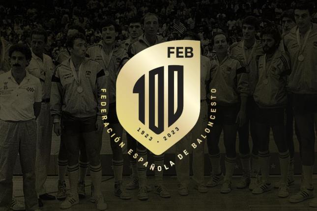 Como emblema de este histórico Centenario, la FEB ha diseñado un logotipo especial, basado en la evolución de los diferentes logotipos de la historia de la Federación hasta llegar a adaptarse al contorno del corazón del actual. El uso del color dorado refleja la vocación ganadora y de excelencia de la FEB. Se trata de un símbolo nuevo que mira a un futuro esperanzador a partir del camino exitoso de la historia de la Federación. Al que se añade el lema ‘Nuestra Historia, Nuestro Futuro”.