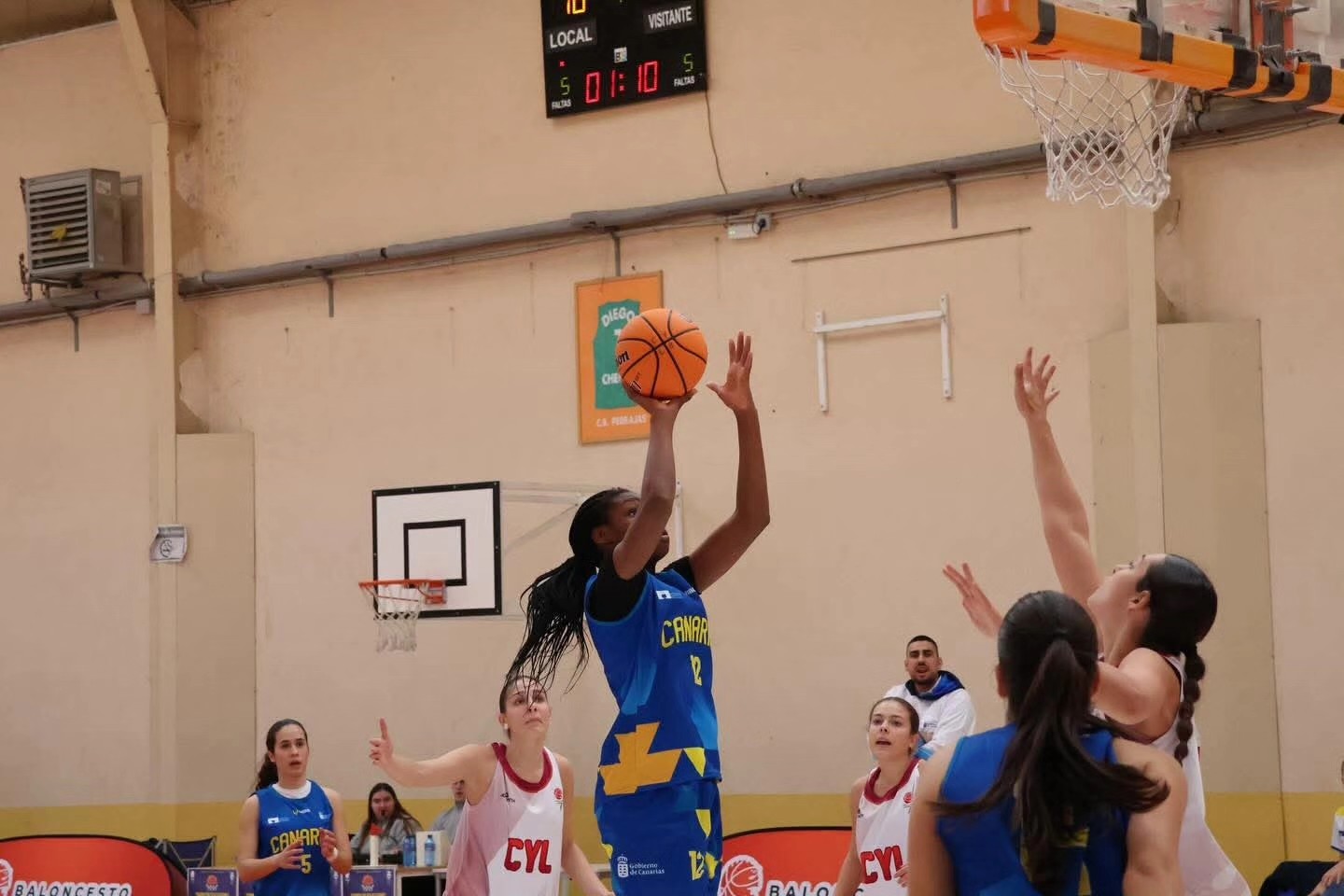 En Infantil Femenina (U14F), Canarias sumó un triunfo ante Madrid U13F (61-70) y afrontó un exigente partido ante Castilla y León (77-60) que sirvió como una valiosa prueba formativa.