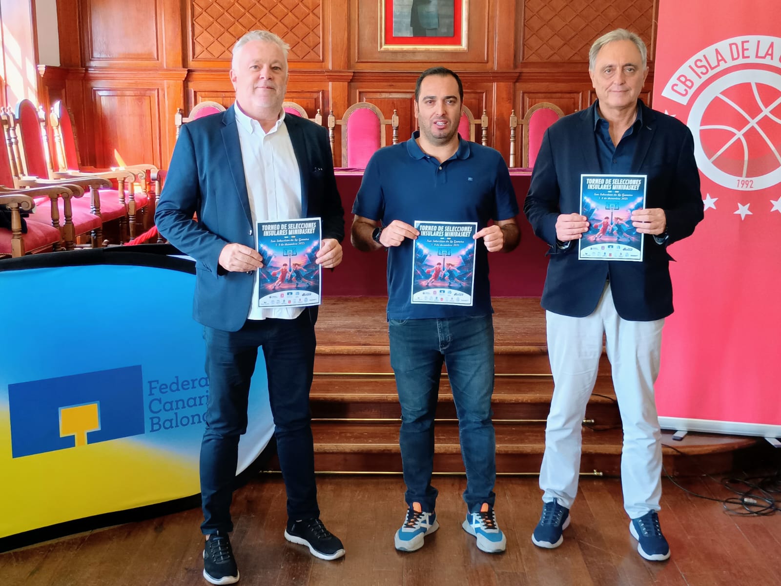 El Salón de Plenos del Ayuntamiento San Sebastián de La Gomera acogió hoy la presentación oficial del Encuentro de Selecciones Insulares de Minibasket 2025, con la presencia del concejal de Deportes, Aday Herrera, el director deportivo de la Federación Canaria de Baloncesto, Jorge Olano, y el presidente del CB Isla de La Gomera, Luis Valeiras.