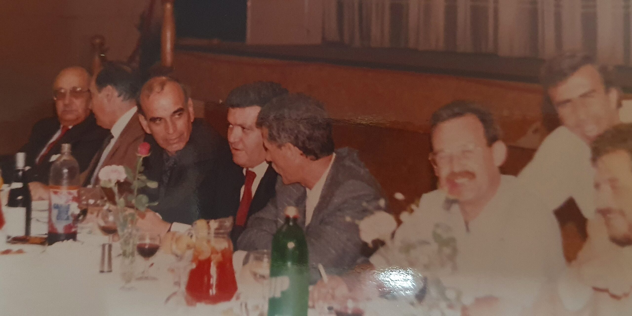 Las comidas y reuniones de los integrantes del gremio arbitral resultaban muy frecuentes antaño. Tanto en las organizadas por el propio Comité como en los fines de semana. Era suficiente con cubrir partidos en el Norte o el Sur de Tenerife para quedar en un restaurante o guachinche al terminar los encuentros para comer. En esta foto histórico apreciamos a Luis Fumero (de pie), a los internacionales Miguelo Betancor y Ángel Recuenco… Con ellos, Juan Mesa, «El Gofio», Fran Padrón, Joaquín Sicilia, entre otros.