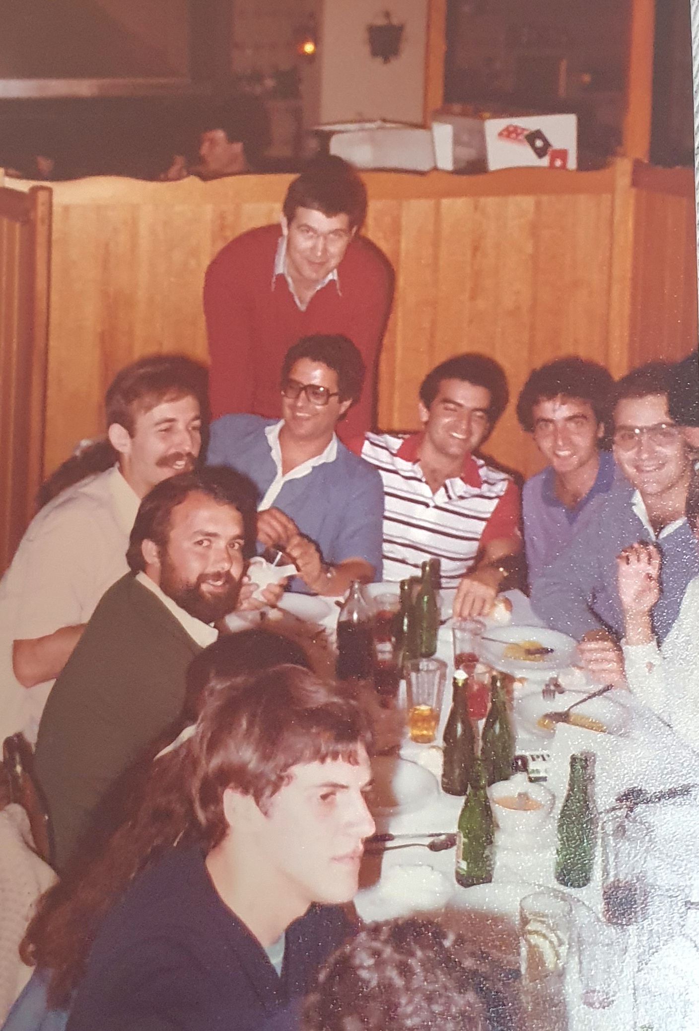 Las comidas y reuniones de los integrantes del gremio arbitral resultaban muy frecuentes antaño. Tanto en las organizadas por el propio Comité como en los fines de semana. Era suficiente con cubrir partidos en el Norte o el Sur de Tenerife para quedar en un restaurante o guachinche al terminar los encuentros para comer. En esta foto histórico apreciamos a Luis Fumero (de pie), a los internacionales Miguelo Betancor y Ángel Recuenco… Con ellos, Juan Mesa, «El Gofio», Fran Padrón, Joaquín Sicilia, entre otros.