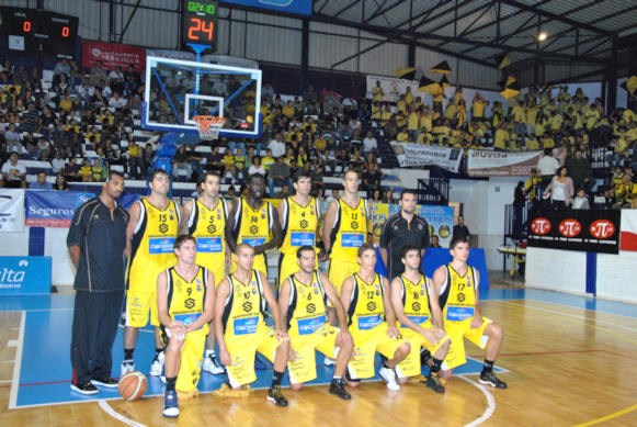 Los Pollos Amarillos en la temporada 11-12, ubicados en la grada frente al banquillo del Canarias