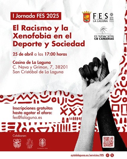 El Casino de La Laguna, sito en la calle Nava y Grimón número 7, acogerá el día 25 de abril, a las 17:00 horas, la I Jornada FES 2025, que tratará el RACISMO Y LA XENOFOBIA EN EL DEPORTE Y EN LA SOCIEDAD.