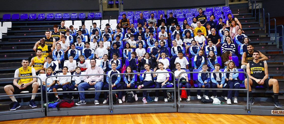Alrededor de 80 alumnos de 3º, 5º y 6º de Primaria del CEIP Miguel Pintor visitaron esta mañana las instalaciones del CB Canarias en el Pabellón Insular Santiago Martín.