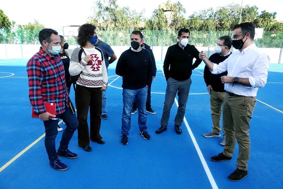 El alcalde, José Manuel Bermúdez, junto a la concejala de Deportes, Alicia Cebrián, y los ediles de Viviendas Municipales y distrito Salud-La Salle, Juanjo Martínez y Carlos Tarife, respectivamente, visitaron la instalación deportiva para comprobar la finalización de las mejoras en una instalación muy frecuentada por los vecinos de la zona.