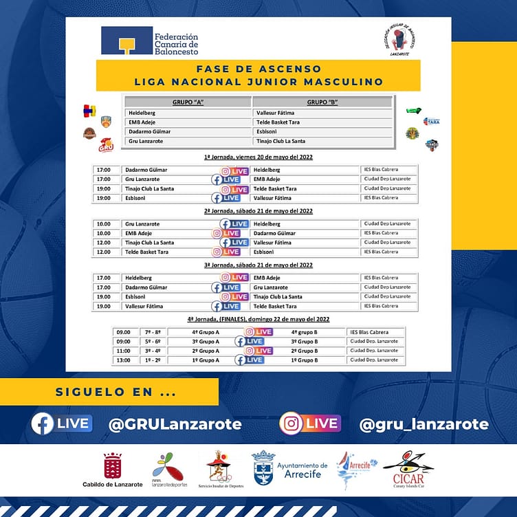 Arrecife de Lanzarote acogerá del 20 al 22 de mayo la Fase de Ascenso a la Liga Canaria Júnior Masculina.,