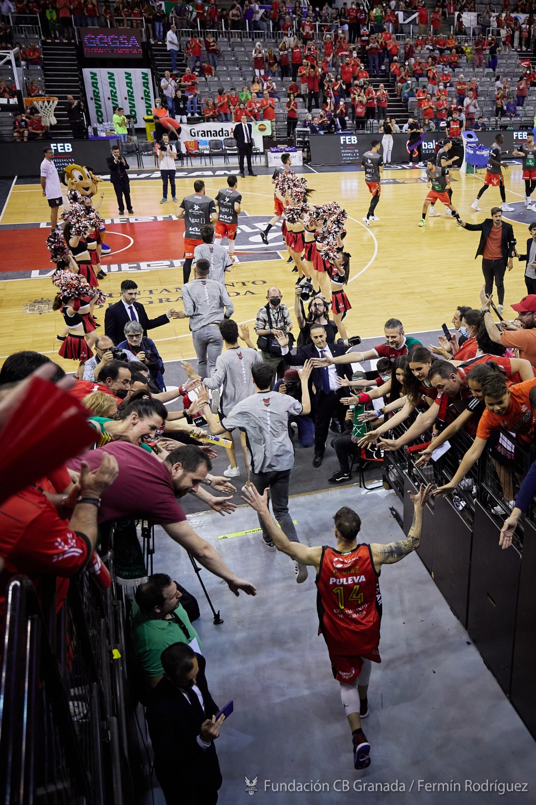 El Palacio Municipal de los Deportes de Granada está siendo el centro de atención de la ciudad. En la que fue sede de la Copa del Rey el Coviran Granada de los canarios Jacobo Díaz y Christian Díaz, además del ex canarista Niang Petit, gana en el descanso por 50 a 28, una ventaja de 22 puntos que sitúan a los granadinos a solo 20 minutos de proclamarse matemáticamente campeón de la liga regular LEB-Oro, lo que le dará el billete directo a la Liga Endesa 22/23.
