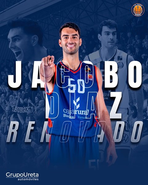El Grupo Ureta Tizona Burgos y Jacobo Díaz (23/07/1996, Madrid) han llegado a un acuerdo para que el alero y el club burgalés continúen con su relación.