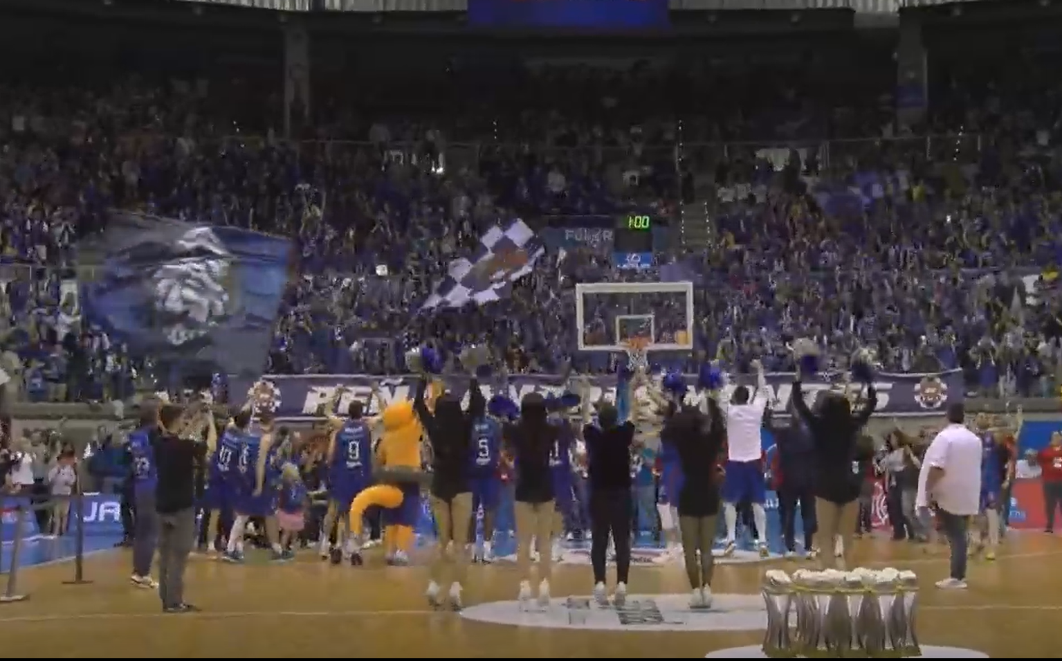A lo largo de los 40 minutos y, de manera especial a la conclusión, los más de 10.000 aficionados que llenaron el Coliseum corearon «Sí, sí, sí… la ACB ya está aquí», además del «Campeones, campeones, campeones».