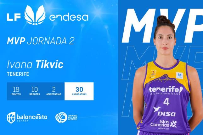 Después de tres jornadas disputadas una ‘novata’ lidera el ranking de valoración de la LF Endesa. La irrupción de Ivana Tikvic (Tenerife) tiene su primera recompensa: el galardón de MVP de la jornada 2 que terminó sus encuentros este martes con los dos aplazados por la Eurocup.