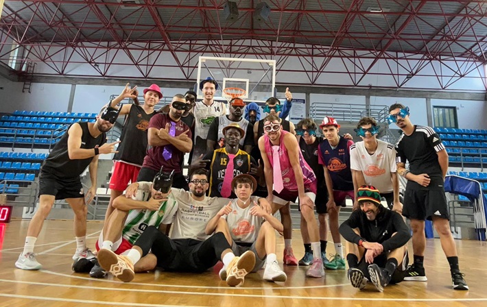 La plantilla del CB Aridane, que lidera el Grupo BB de la Liga EBA, decidió saltar a la cancha del «Severo Rodríguez» luciendo un disfraz, para celebrar, a la manera de unos deportistas, el CARNAVAL.