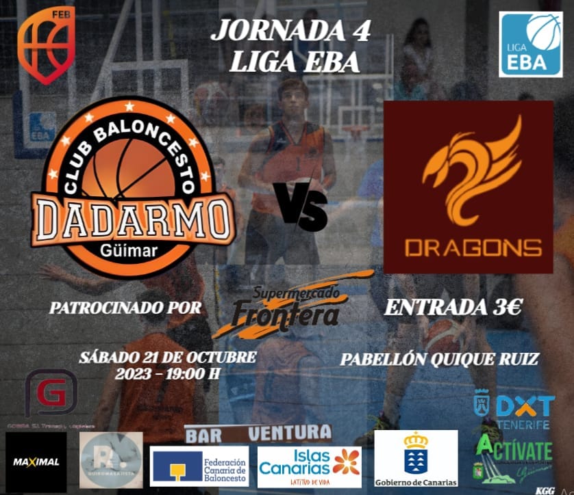 El Pabellón Quique Ruiz acogerá este sábado, a las 19:00 horas, el interesante encuentro de la Liga EBA entre el dadarmo Güímar y el líder invicto del Grupo BA el SUN CHLORELLA DRAGONS (SAN JORGE) de Madrid.