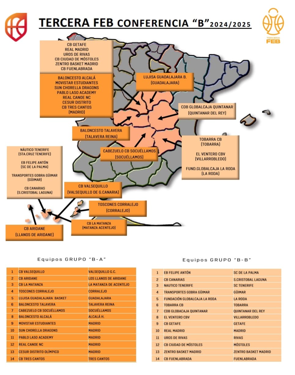La FEB ha colocado a cuatro clubes canarias en cada grupo, formando en el B-A CB Aridane, CB La Matanza, CB Valsequillo y Toscones Corralejo.