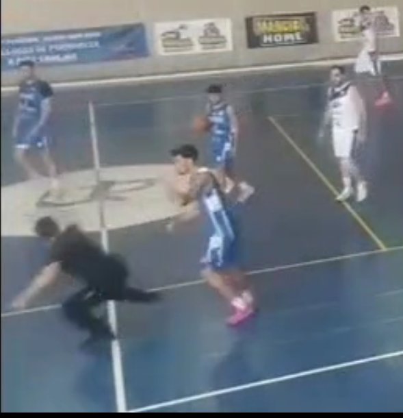 Momento en el que el árbitro cae tras recibir el fuerte empujónEs la tercera vez que agreden a árbitros de baloncesto en Canarias en los últimos años, tras la agresión sufrida la temporada pasada por una árbitra en La Palma y la de 2021 por un árbitro en Tenerife.
