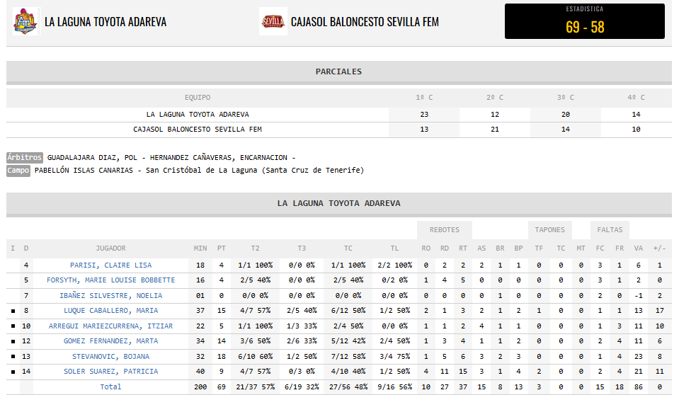 También hay que destacar la aportación anotadora en la tarde de hoy de la base María Luque, con 15 puntos, seguida por los 14 de Marta Gómez.