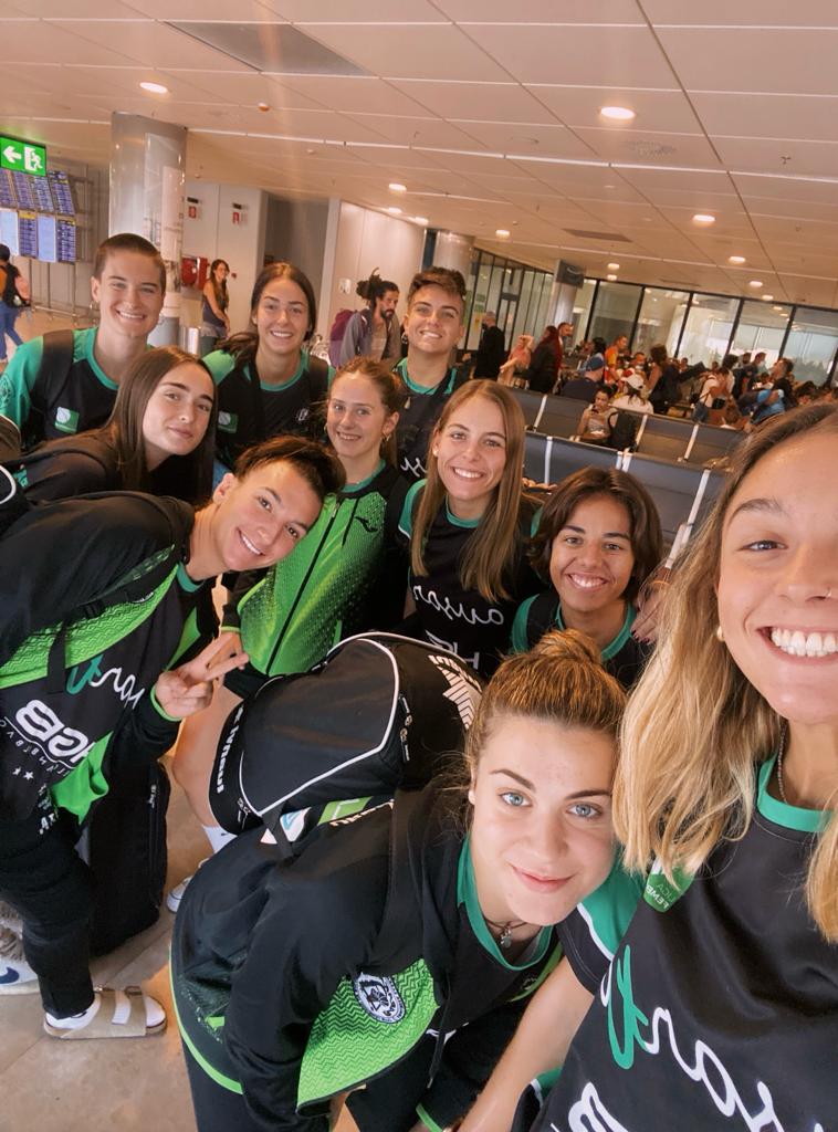 La expedición viajó desde Barakaldo a Madrid en guagua, con escala en Burgos, donde pernoctó. Esta mañana se trasladaron a Madrid Barajas para coger el avión que les trasladó a La Palma, datos que facilita el club en Twitter.