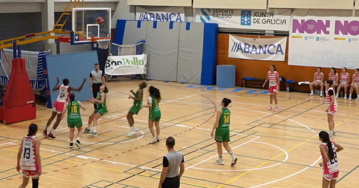 Marga Moreira generó problemas en el segundo cuarto a la defensa nauta, sacando provecho desde distintas distancias para abrir una pequeña brecha a favor de las gallegas, bien secundada por Nerea Liste y Carolina Ribeiro. Las pontevedresas firmaron la máxima de la primera parte (+13) con un 30-17, pero la inspiración de Elena Escuder y Sofía Magali permitió recortar distancias con éxito desde el 6,75, llegando al descanso en un 32-23.