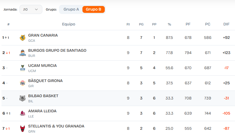 En el Grupo B sigue al frente el Gran Canaria, con siete victorias y una sola derrota.