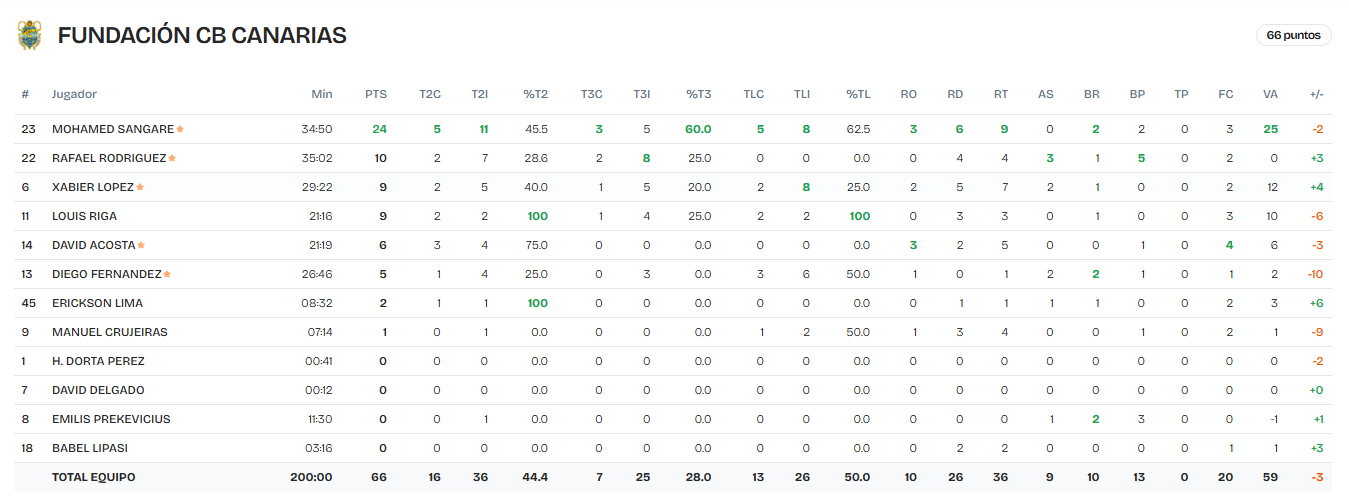 Los errores desde el tiro libre (13/26) y la falta de fluidez en determinados momentos del choque para sacar a relucir su mejor juego mermaron las opciones del conjunto canarista, pese al buen partido de Mohamed Sangare (24 puntos y 9 rebotes). Aún así, los laguneros pelearon hasta el último resuello, incluido un triple sobre la bocina de Rafa Rodríguez, que no entró.
