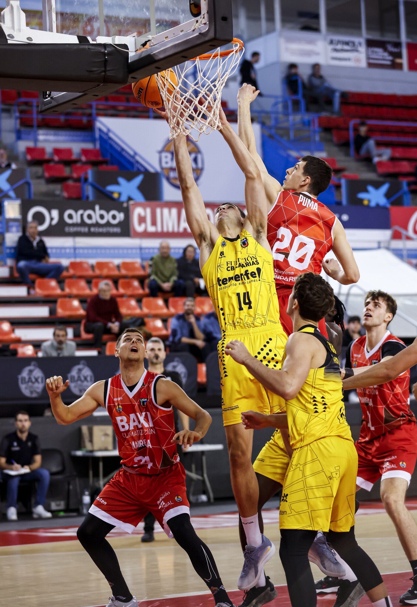 Fue ganando en confianza el conjunto canarista conforme avanzaron los minutos, tras un arranque ligeramente mejor de su adversario (8-3). De hecho, camino de la pausa, el Fundación CB Canarias amagó incluso con abrir brecha: 29-35, tras un acierto desde más allá del arco de Guerra. Pese a todo, el BAXI Manresa, que tuvo en Guillem Naspler y en Jan Pumarola a sus mejores hombres, devolvió el partido al alambre (38-39, min. 20).