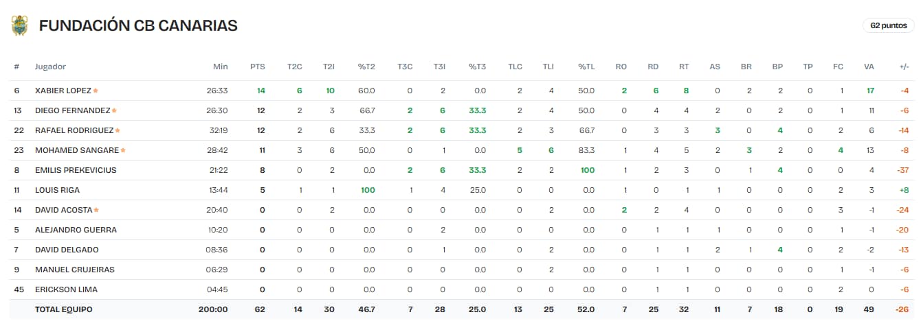 En ese contexto, y pese a los puntos finales de Prekevicius, el Fundación CB Canarias terminó cediendo por un claro 88-62. Los tinerfeños cierran la décima jornada con un balance de 7/3 y repetirán salida la próxima semana, ya que tendrán que visitar al Casademont Zaragoza el viernes que viene (Pabellón Siglo XXI, 19:30 hora canaria).