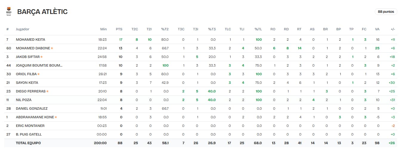 A pesar de las dificultades, el filial aurinegro no tiró la toalla e intentó en varios momentos llevar el duelo a su territorio, pero no con la continuidad necesaria. Amagó con hacerlo en la reanudación (42-34) y con un 0-9 al inicio del último cuarto (64-47), insuficiente en cualquier caso para contrarrestar a un Barça que jugaba más fluido y acusaba mucho menos la doble jornada de viernes y sábado.