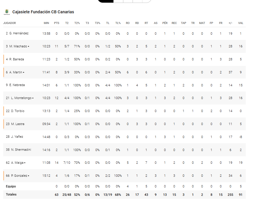 Las estadísticas también se paran, recogiéndose lo sucedido hasta el minuto 20 del 63 a 12.