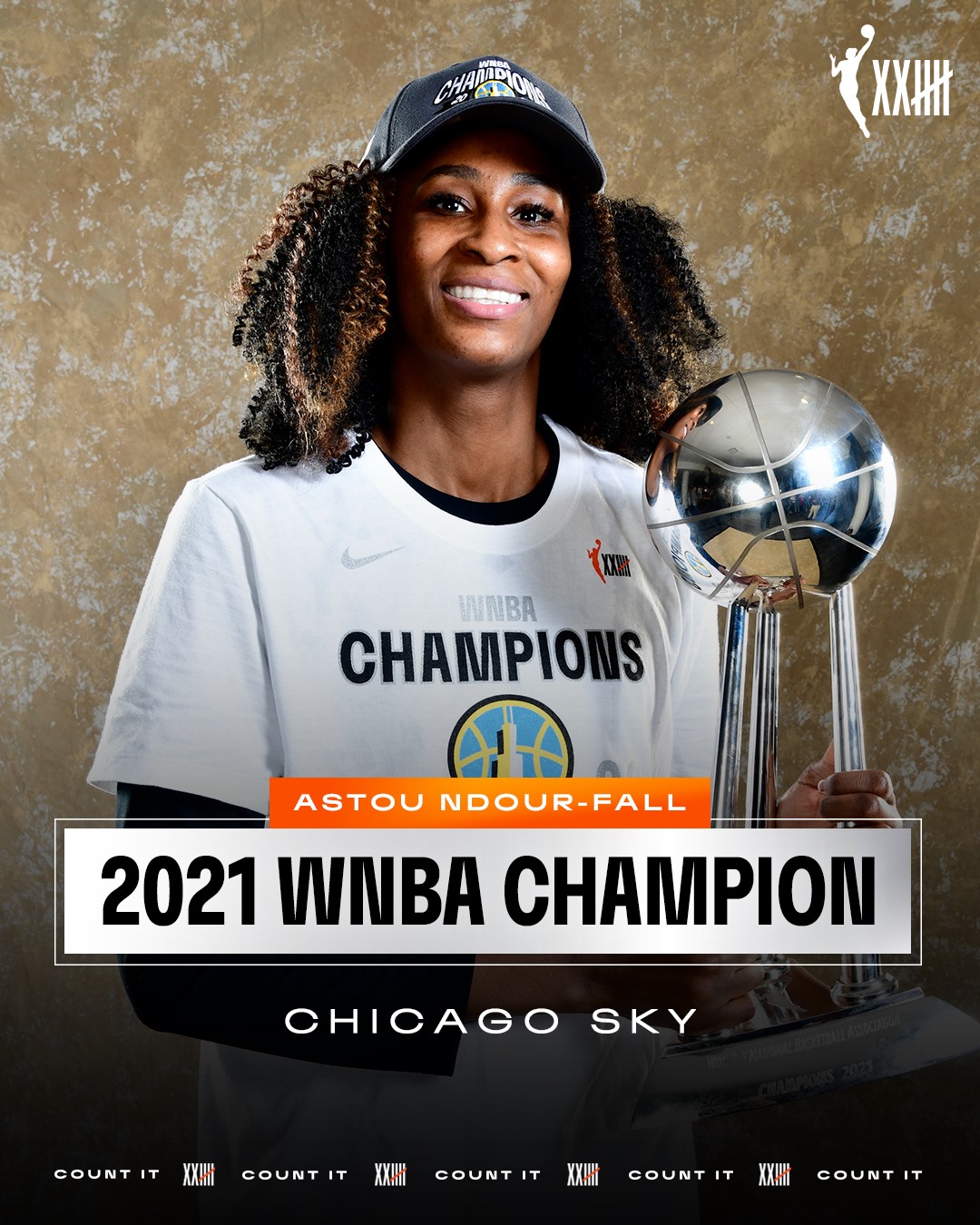 Astou Ndour se ha convertido en una de las tres españolas que han conseguido proclamarse campeonas de la WNBA, la mejor liga de baloncesto del mundo. Las Chicago Sky se impusieron en el cuarto partido de la final contra las Phoenix Mercury, con una participación de cinco minutos de la jugadora internacional española, que no consiguió anotar en el partido que aseguró su primer anillo de campeona.