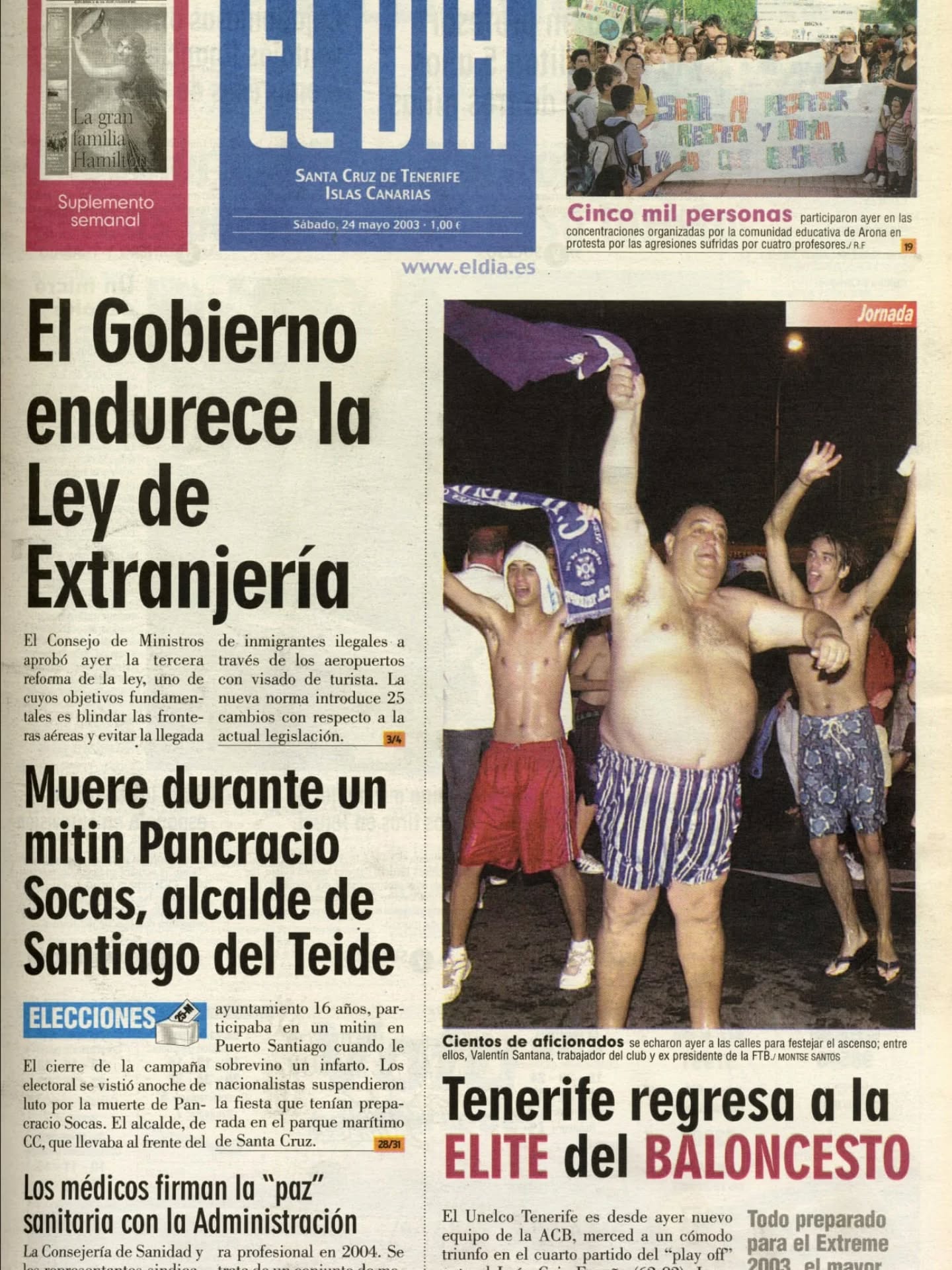 Hasta siempre, Valentín. Te recuerdo desde aquella lejana faceta arbitral, compartiendo canchas con Antonio Guadalupe, primero, y con Angel Recuendo, después. Y de aquel paso por el Palais Royal y la cancha al aire libre de un antiguo cine, el Real Cinema, cerca de Méndez Núñez. Me acuerdo del equipo femenino patrocinado por una conocida marca de café, cuyo dueño fue una leyenda del baloncesto…. Viví muy de cerca tu labor federativa, primero como secretario, en las épocas de Floreal y Bento, hasta que asumiste la presidencia. Muchas vivencias pasamos juntos, siempre colaborando con los clubes… y ya, en tu más reciente etapa, como presidente del Uni CajaCanarias y Tenerife Central. Te vas porque así lo ha querido el de ARRIBA. Seguro que estarás muy a gusto volviendo a reunirte con Paco Chinea, Sixto Trujillo Eliseo Bento, Juan Pedro Zafra… GRACIAS POR TANTO, AMIGO VALENTÍN